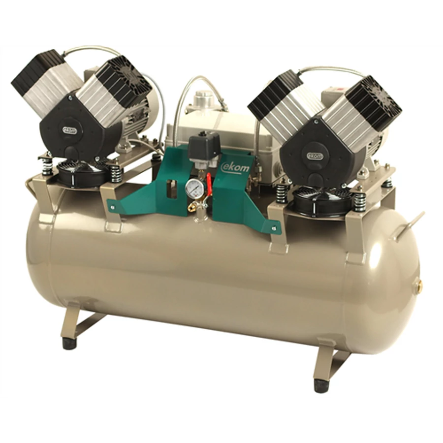 EKOM DK 50 2×2V/110/M 110 lit. tartállyal Membrán szárítóval 8-10bar 165lit/perc 8bar