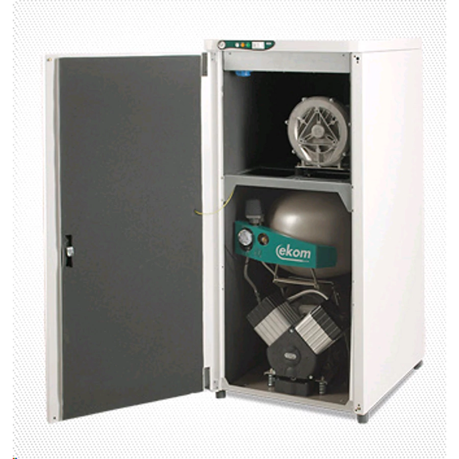 EKOM DUO 2V/M 2V kompresszor szárítóval, 1db szívómotorral hangszigetelt szekrényben